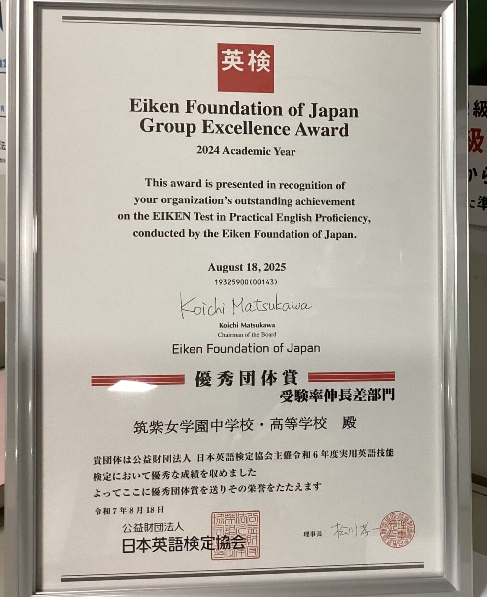 この度、日本英語検定協会より優秀団体賞をいただきました。