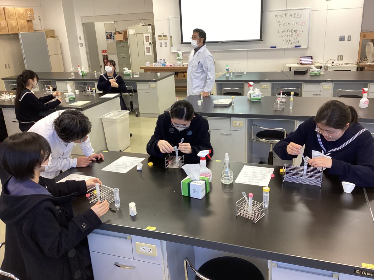 生徒たちは数学・物理・化学・生物・地学の5つの教室に分かれて楽しく実験や観察を行いました。